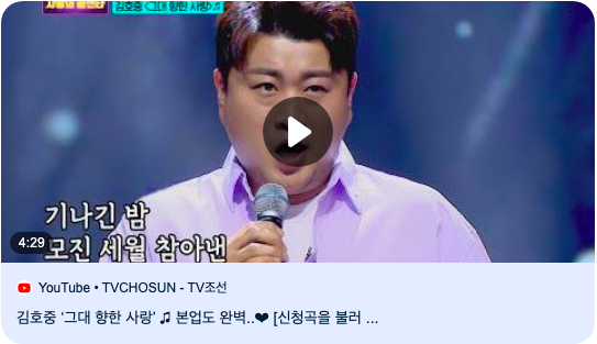 김호중은 클래식과 트로트를 넘나드는 독특한 음악적 배경을 가진 아티스트입니다. ‘그대 향한 사랑’은 그의 폭넓은 음악적 역량을 잘 보여주는 곡 중 하나입니다. 이 곡은 트로트 장르로, 대중적이면서도 감성적인 분위기를 자아냅니다. 김호중의 풍부한 성량과 섬세한 표현력은 이 곡에서 특히 돋보입니다. 그는 클래식 음악을 전공한 뒤, 다양한 장르의 음악을 소화하면서 자신의 색깔을 찾았고, 그 결과 트로트 가수로서도, 성악가로서도 큰 성공을 거두었습니다. 하지만 최근에 있었던 음주 뺑소니 사건으로 인해 실형을 받는 안타까운 사건이 있었습니다.
