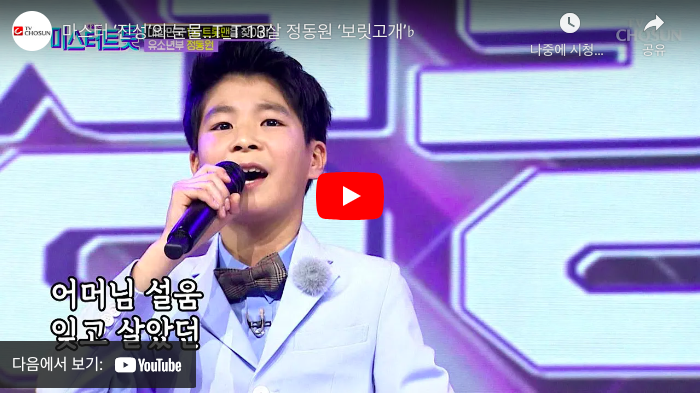 정동원은 TV조선 '미스터트롯' 시즌 1에서 '보릿고개'를 열창하며 많은 사람들에게 감동을 선사했다. 당시 어린 나이에도 불구하고, 그는 곡의 감성을 완벽히 소화하며 뛰어난 가창력을 선보였다. 어린아이가 경험하지 못한 시대적 아픔을 어떻게 이렇게 절절하게 표현할 수 있을까? 정동원의 무대는 그 자체로 한 편의 드라마였다. 노래를 부를 때마다 그의 목소리에서 애절함이 묻어나와, 관객과 심사위원 모두 눈시울을 붉혔다.