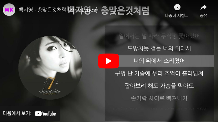 - 호소력 짙은 목소리: 백지영 특유의 절절한 감정 표현이 곡 전체를 이끕니다.