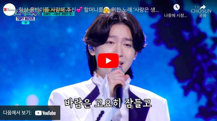 현재 유튜브나 공식 방송 클립을 통해 김용빈이 부른 ‘사랑은 생명의 꽃’을 다시 감상할 수 있습니다. 가사를 천천히 따라 읽으며 다시 들어보면, 그 진심과 감정이 더 깊이 느껴집니다. 이 노래는 단순히 트로트라는 장르를 넘어서, 삶과 죽음, 사랑과 그리움이라는 보편적 주제를 감동적으로 풀어낸 곡입니다. 특히 누군가를 그리워하는 사람들에게 큰 위로와 따뜻함을 전해주는 노래로 기억될 것입니다.