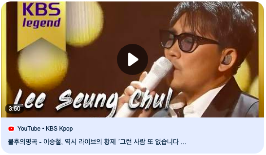 이승철은 대한민국에서 오랫동안 사랑받아온 가수로, 그의 목소리는 발라드에 특히 적합합니다. '그런 사람 또 없습니다'에서는 이승철의 감정 표현이 극대화되어 있으며, 그가 전달하는 깊은 슬픔과 후회의 감정은 듣는 이의 마음에 오래 남습니다.