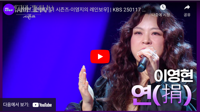 ‘연’은 단순한 이별 노래가 아닙니다. 끝내 전하지 못한 말, 지워지지 않는 그리움, 놓지 못하는 사랑… 이 모든 감정들이 층층이 쌓여 한 곡 안에 담겨 있습니다. 이영현의 호소력 짙은 목소리를 통해 그 감정은 더욱 선명하게 다가옵니다.