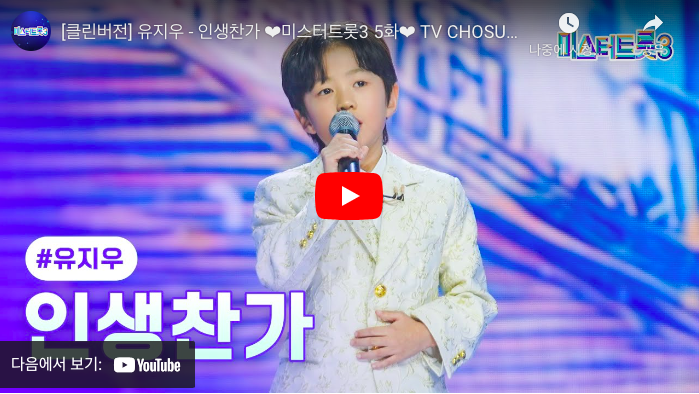 '미스터트롯3'에서 유지우가 부른 '인생찬가'는 단순한 노래가 아닌 감동적인 이야기로 많은 사람들에게 기억될 것입니다. 어린 나이에도 불구하고 깊이 있는 감성과 뛰어난 가창력을 보여준 유지우의 무대는 앞으로도 많은 사람들에게 회자될 것입니다. 그의 성장이 더욱 기대되는 이유입니다.
