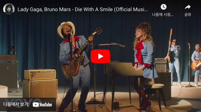 "Die With A Smile"는 세계적인 팝 아티스트 레이디 가가(Lady Gaga)와 브루노 마스(Bruno Mars)가 협업한 감성적인 발라드 곡입니다. 2024년 8월 16일에 발매된 이 곡은 두 아티스트의 독특한 음악적 색깔이 어우러져 큰 화제를 모았습니다.